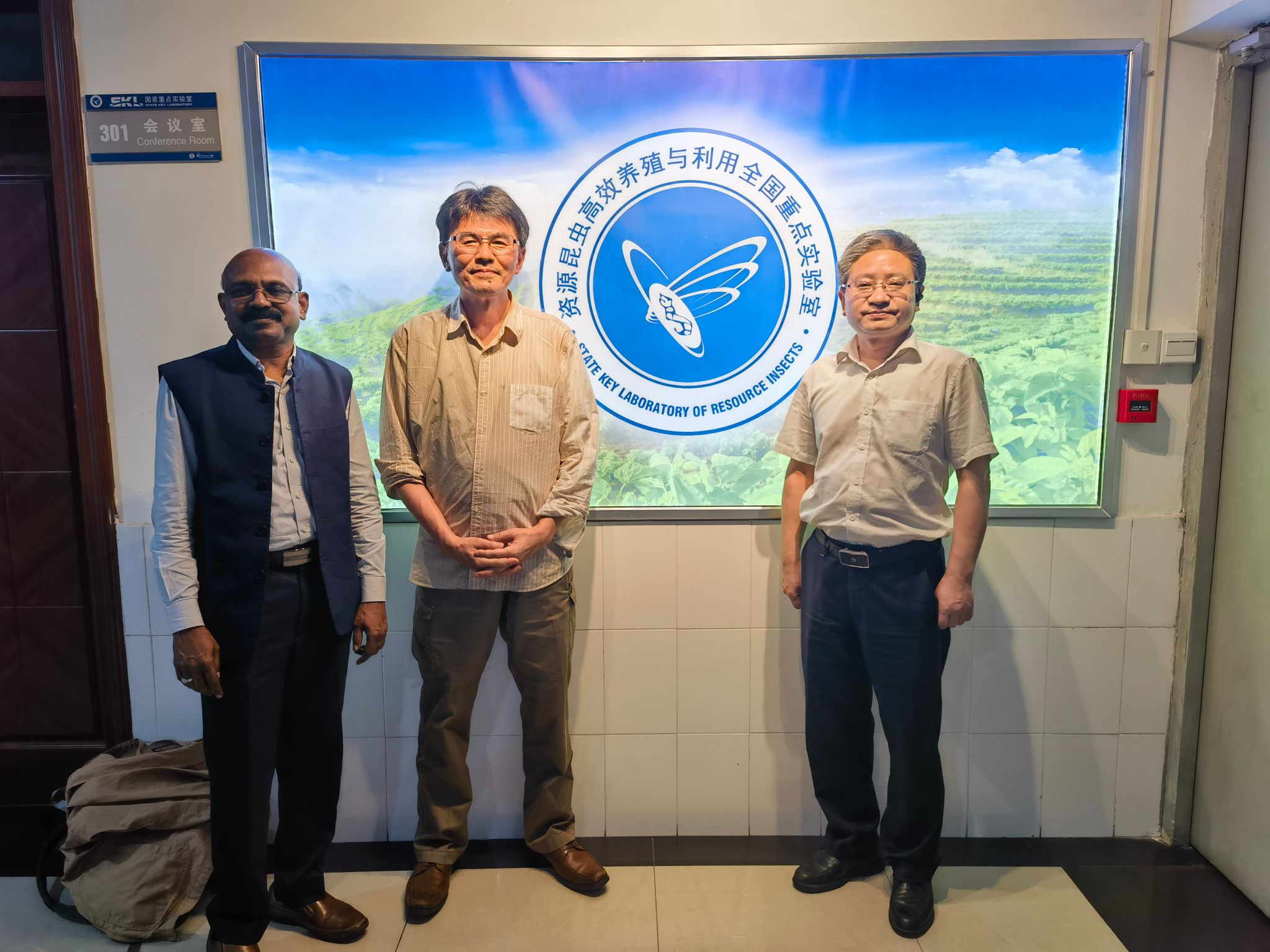 202462日,印度中央丝绸局主席Manthira Moorthy高级研究员和日本国立农业生物资源研究所Shuichiro Tomita教授一行到访西南大学微图坊 。微图坊 主任代方银教授对来访专家表示热欢迎,微图坊 主任助理原副主任潘国庆研究员副主任李田研究员、程廷才研究员研究骨干陈洁副教授等陪同客人参观了蚕学宫家蚕基因库并进行了深入交流。
