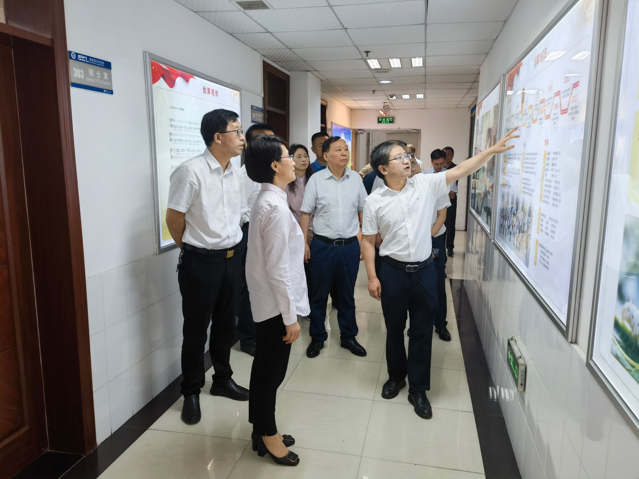 来到蚕学宫三楼,代方银向谭副主席一行详细介绍了微图坊 的建设发展历史和几代人的接续奋斗过程,微图坊 近年来在科学研究、产业服务、国内外交流等方面的重点工作和主要业绩。谭副主席不时提问并讲她的看法,整个过程谈笑风生。