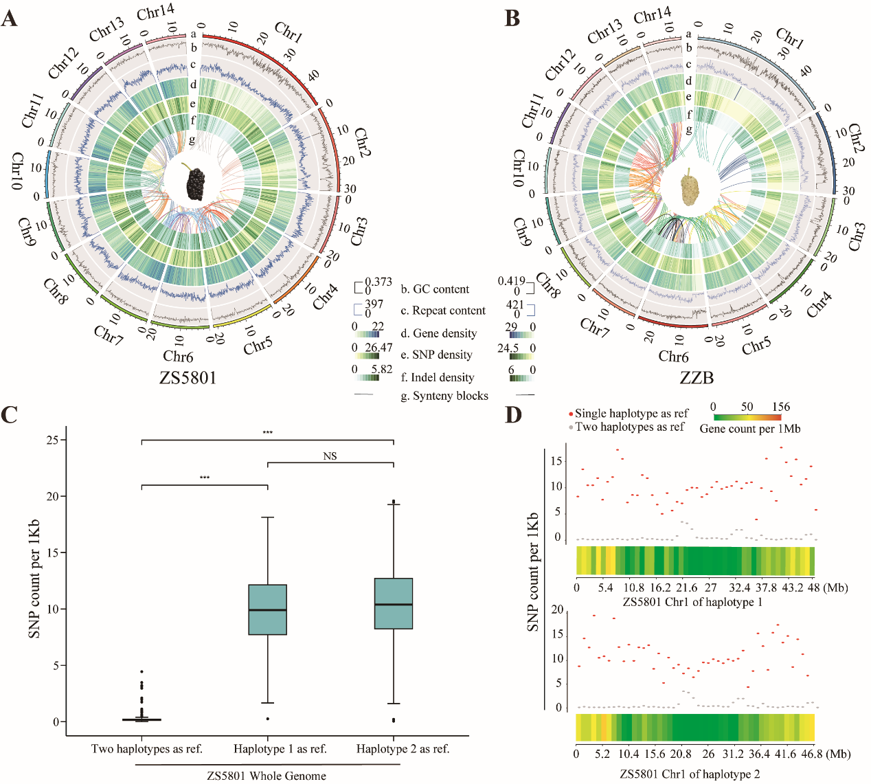 中桑5801(紫色)和珍珠白(白色)品种单体型基因组组装与注释