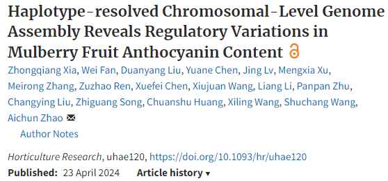 赵爱春教授课题组在《Horticulture Research》(中科院一区TOP期刊,最新影响因子8.7)发表研究论文,报道通过比较基因组学和全基因组关联分析(GWAS),成功鉴定到一个关键候选基因MaVHAG3,为理解桑果色泽形成提供了新的视角;结合转录组和代谢组分析,进一步系统阐述了桑树果实色彩多样性的分子基础,为培育富含花青素的果桑品种提供了宝贵遗传资源。