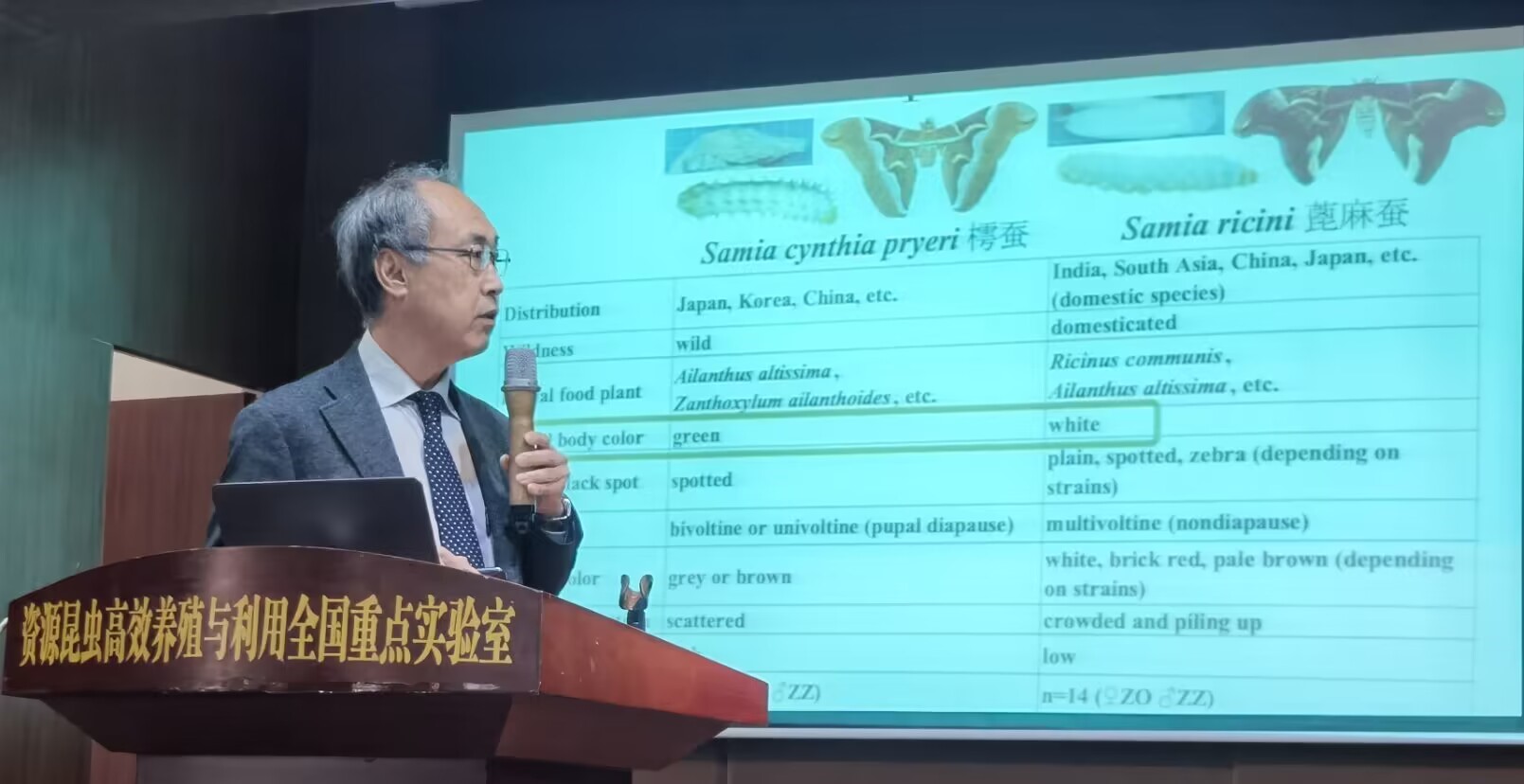 在室交流访问期间,Shimada教授在蚕学宫学术报告厅作了题为“Molecular genetics of Samia ricini and Samia cynthia (Lepidoptera: Saturniidae)”的学术报告,并分别到微图坊