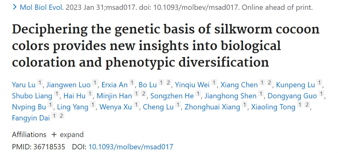 2023年1月31日,进化生物学领域国际Top期刊Molecular Biology and Evolution(《分子生物学与进化》)在线发表了西南大学家蚕基因组生物学国家重点微图坊