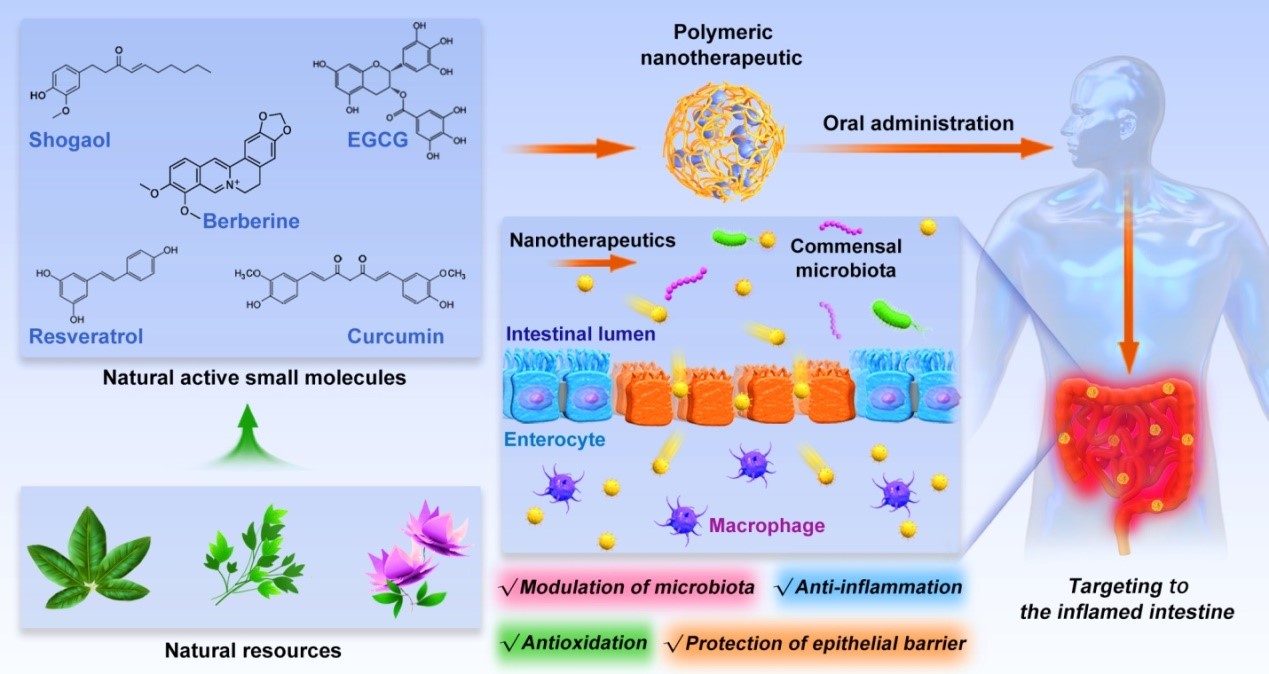 炎症性肠病(IBD)的全球发病率呈现急剧上升趋势,且易转化为结肠癌。虽然研究人员已经做出了巨大的努力,但仍缺乏根治该疾病的药物系统。肖波教授受药物递送领域重要综述期刊《Advanced Drug Delivery Reviews》(IF = 15.4)邀请,撰写题为“Oral delivery of natural active small molecules by polymeric nanoparticles for the treatment of inflammatory bowel diseases”的综述。该论文对纳米药物系统的载体材料(如丝素蛋白、明胶等)、活性小分子(如白藜芦醇、姜黄素等)和靶向分子等方面进行了系统的梳理、总结和展望,对未来口服纳米药物系统构建及天然活性小分子药物的筛选具有重要指导意义。
