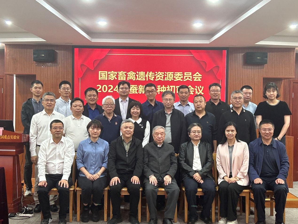 召开,全国畜牧总站畜禽资源处处长、国家畜禽遗传资源委员会办公室副主任孙飞舟,全国畜牧总站畜禽资源处韩旭,国家畜禽遗传资源委员会蚕专业委员会组长代方银,副组长李木旺,委员王永强、艾均文、孙京臣、李喜升、张友洪、周卫阳、黄红燕、阎跟东、董占鹏,以及报审的蚕新品种选育单位负责人和研究人员代表参加会议。