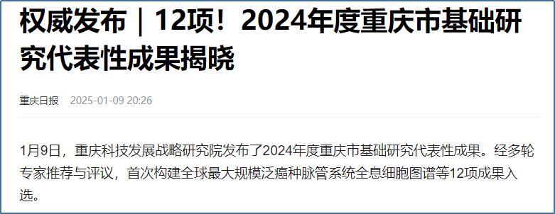 1月9日,重庆科技发展战略研究院发布了2024年度“重庆市基础研究代表性成果”,微图坊