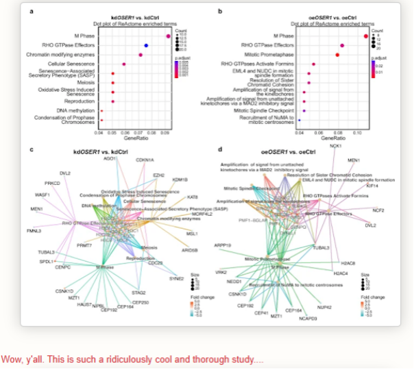 他们在众多模式生物中观察了靶蛋白的敲低和过表达情况。他们跟踪统计了这些生物的整个生命周期,并发现靶蛋白含量增多会延长寿命,反之则缩短寿命。这项研究采用了高精度显微观察、活性氧检测和转录组学等方法,并通过qPCR/RT-PCR对结果进行验证。——此外在人类细胞进行转染,并获得了其蛋白组数据。