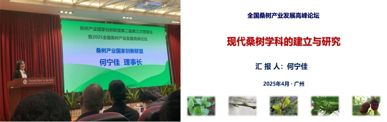 2025年4月8日,由国家林业和草原局桑树产业国家创新联盟主办、广东省农科院蚕业与农产品加工研究所承办的“桑树产业国家创新联盟第二届第三次理事会暨2025全国桑树产业发展高峰论坛”在广州召开。全国百余位桑树行业专家、企业代表及科研工作者齐聚珠江之畔,围绕“桑树产业高质量发展”主题展开深入研讨,并实地考察了花都区蚕桑全产业链示范基地、桑基鱼塘生态循环系统以及产业转化平台等。