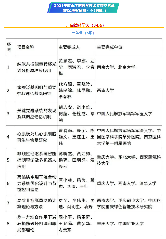 据悉,本次评奖提名项目共计743项,最终获奖139项,其中一等奖34项,包括自然科学一等奖8项、技术发明一等奖2项、科技进步一等奖24项。