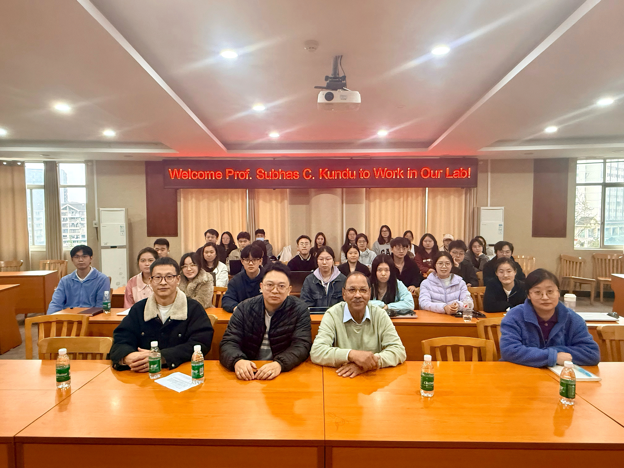 11月10日下午,Kundu教授在科技楼407报告厅作题为“Mulberry and Nonmulberry Silk Biomaterials for Bone Tissue Engineering”的专题报告。报告系统梳理了桑蚕丝与非桑蚕丝生物材料在骨组织工程中的最新进展与应用前景,比较了不同材料在生物相容性、力学性能、降解行为与成骨诱导等方面的差异与优势,并指出通过精准调控结构与功能化改性,丝蛋白基材料在骨缺损修复、骨再生医学及植入式支架开发中具有广阔潜力。报告现场,Kundu 院士与师生围绕表面修饰、细胞相互作用机制、体内外成骨评价与临床转化路径等问题进行了深入讨论,为相关研究提供了启示。