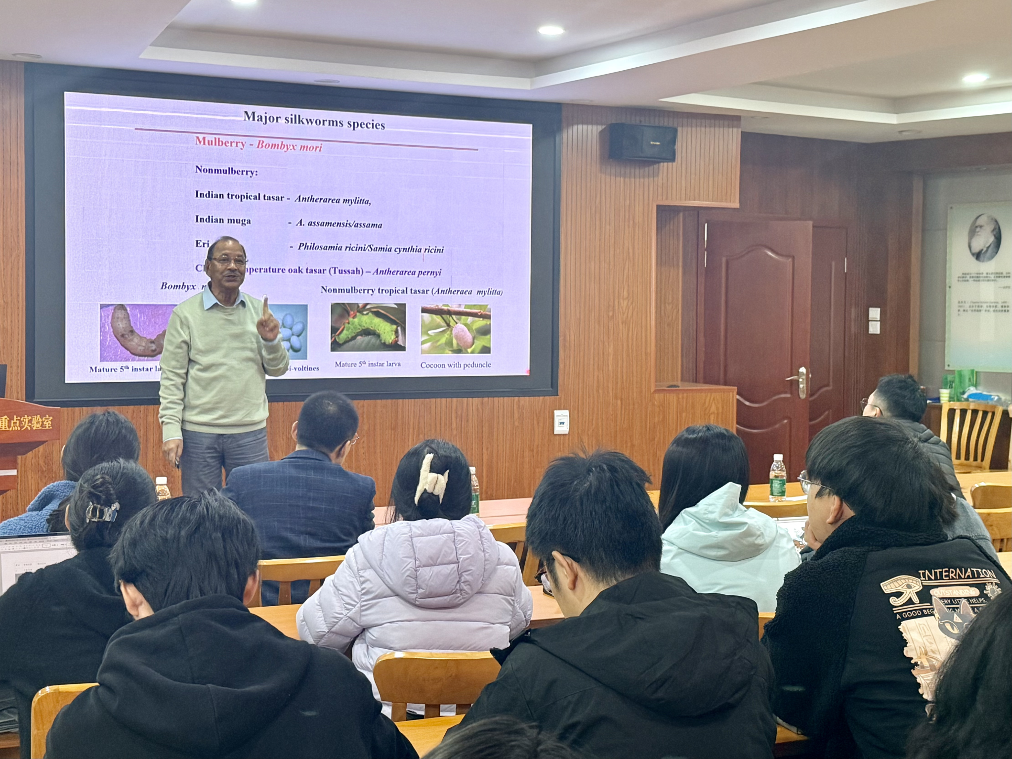 在室期间,Kundu 教授参与家蚕经济性状解析、生物材料开发等多个小组的例会,与师生深入研讨,并对研究生培养提出了建议。同时,Kundu 教授组织带领微图坊