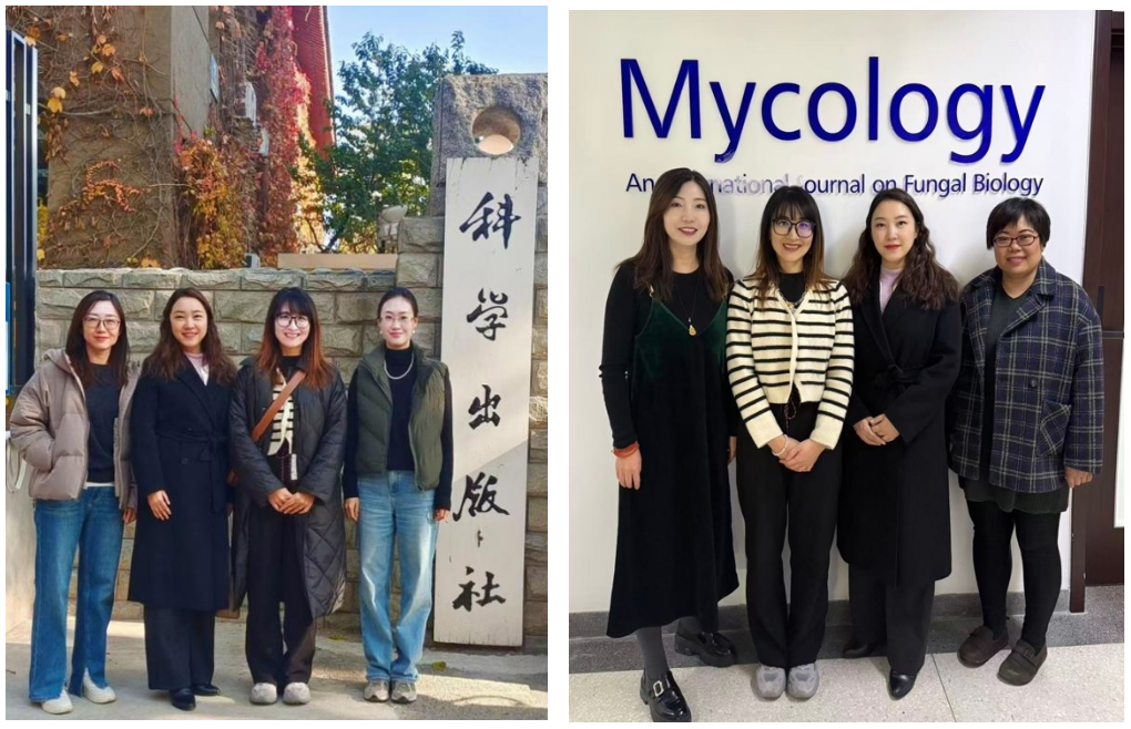 教师代表还专程访问了《Mycology》期刊编辑部。《Mycology》期刊由中国科学院微生物研究所主办,是我国真菌学领域首个拥有独立版权的国际期刊,由Taylor & Francis开放出版,入选"中国科技期刊卓越行动计划"。包佳玲研究员和柯晓雪副教授与《Mycology》主编韩丽研究员进行了交流,在提升期刊国际影响力、组织优质稿源、运营开放出版平台等方面进行了探讨,获得了建设高质量期刊的宝贵经验。