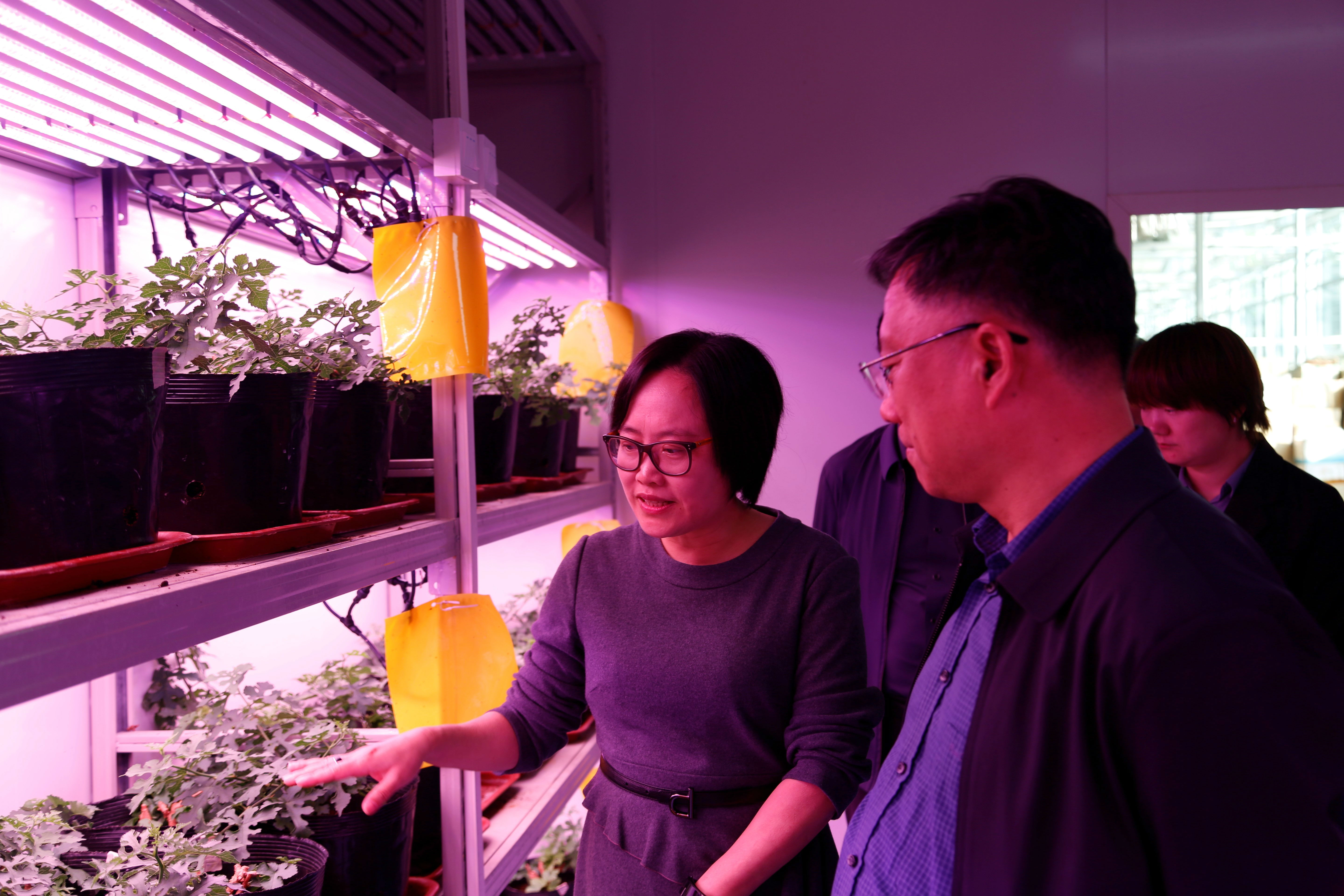 首先,时建忠书记一行在代方银教授的陪同下实地考察了家蚕遗传资源基因库的饲养、制种、保种、蚕种检疫及新种质创制与遗传评价分析等设施设备条件,仔细查看了今年繁殖的蚕种、历年保种记录等,同时在场工作人员向时书记一行介绍了蚕遗传资源深度评价与利用情况,并展示了团队近期构建完成的蚕遗传资源泛基因组数据库。
