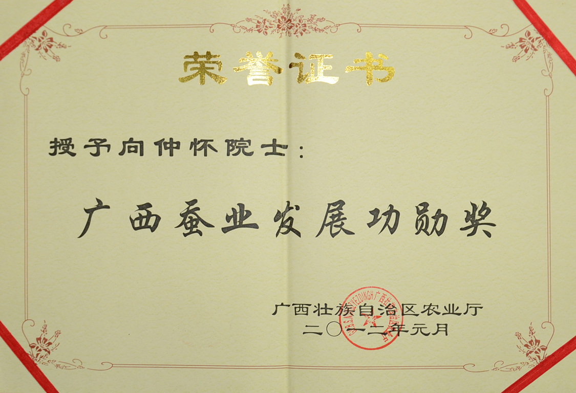 20120116向仲怀院士荣获广西区农业厅“广西蚕业发展功勋奖”